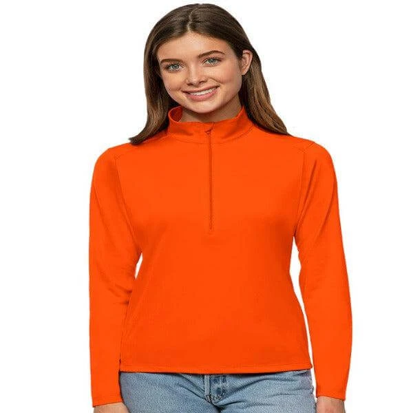100% POLYESTER INTERLOCK KNIT LONG SLEEVE 1/2 ZIP PULLOVER.